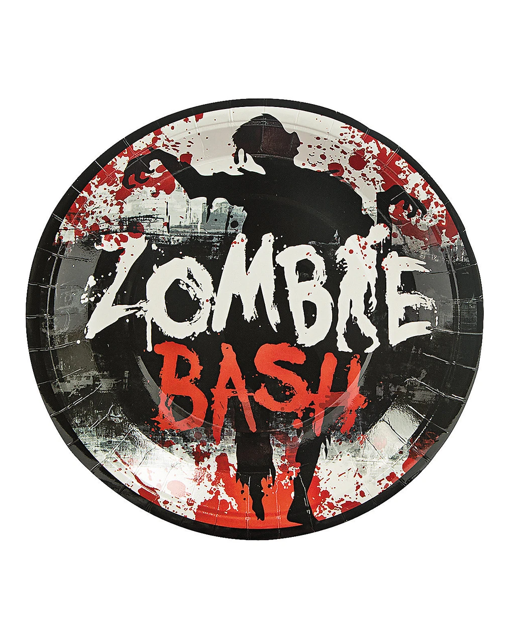 Die 8 großen Zombie Bash Pappteller sind die ideale Deko für dein Halloween Grusel Buffet! Die düsteren Einwegteller sind ideal für außergewöhnliche, blutige Halloween Spezialitäten am Horror-Event!
