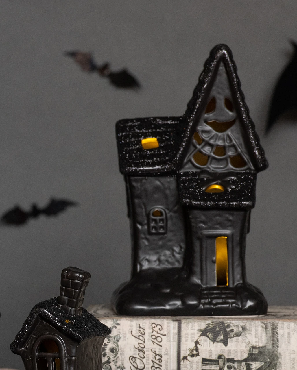 - Schwarzes Keramik Hexenhaus für Grusel Fans
