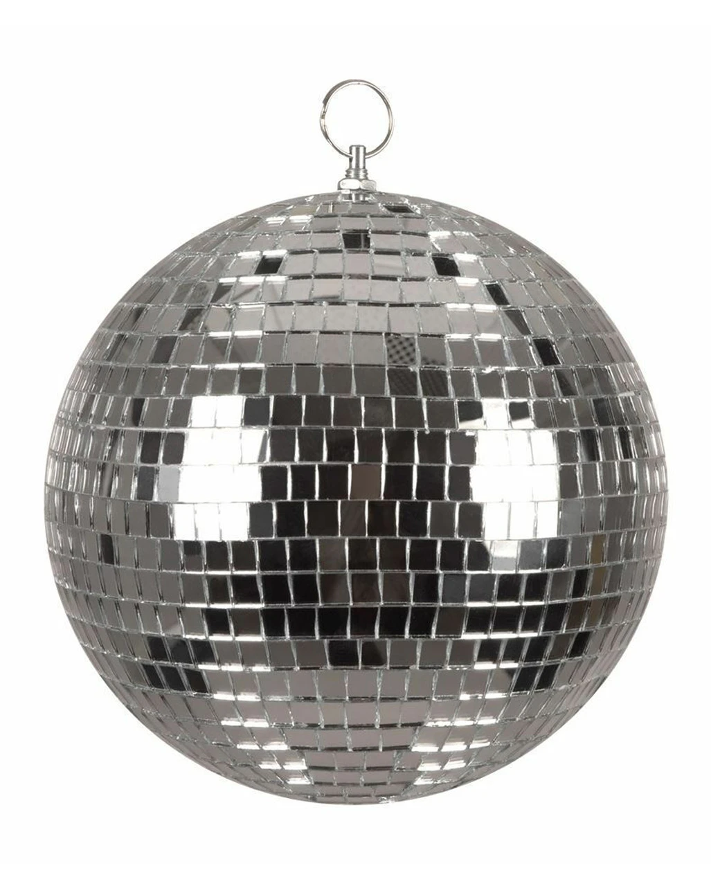 Dieses Modell in Profiqualität verfügt über einen formstabilen Kunststoffkern, hat einen Durchmesser von 20 cm und ist mit unzähligen kleinen Spiegeln (10 x 10 mm) bedeckt. Wahlweise können Sie auch einen Motor (nicht inkl.) verwenden, damit sich die Kugel automatisch dreht.