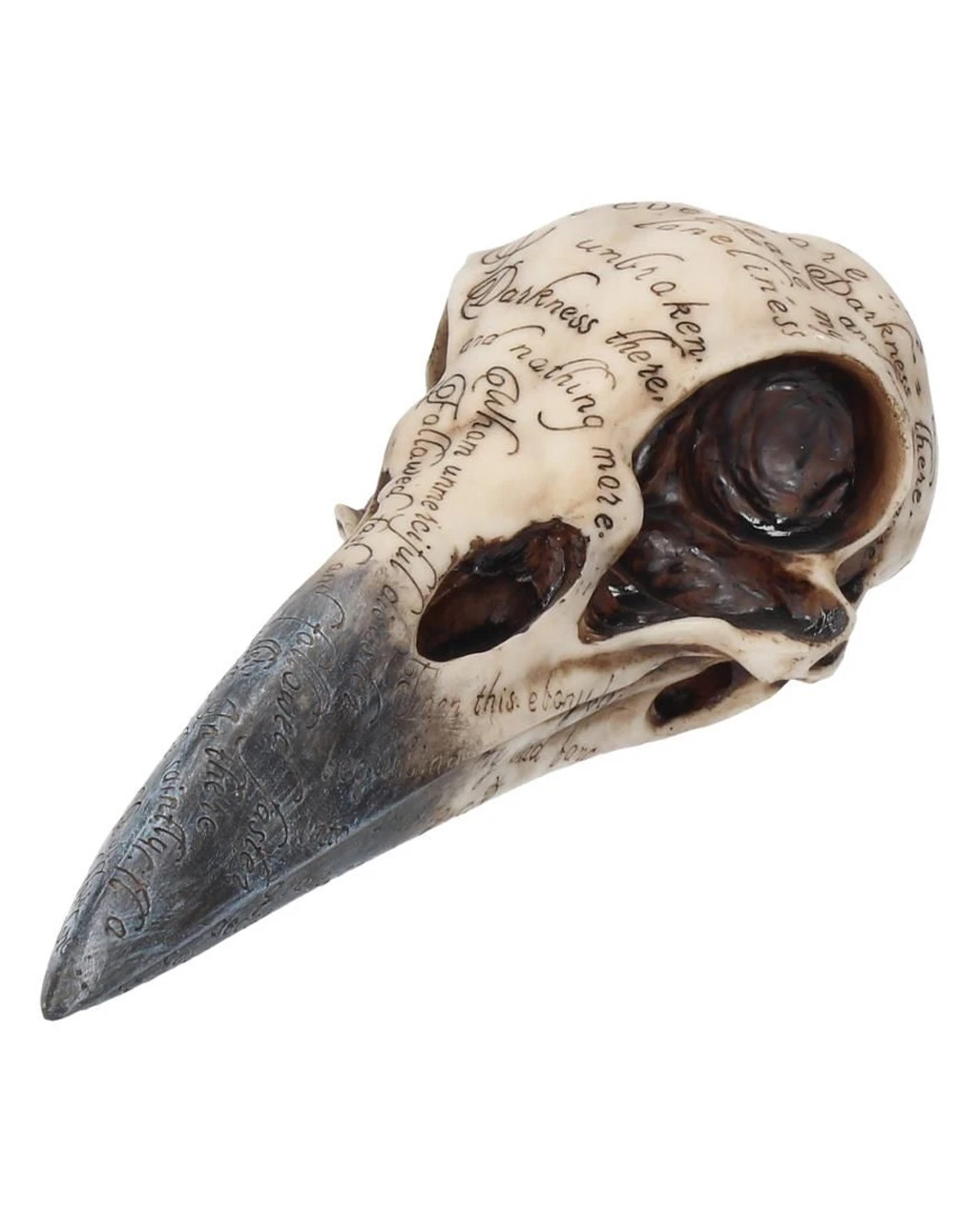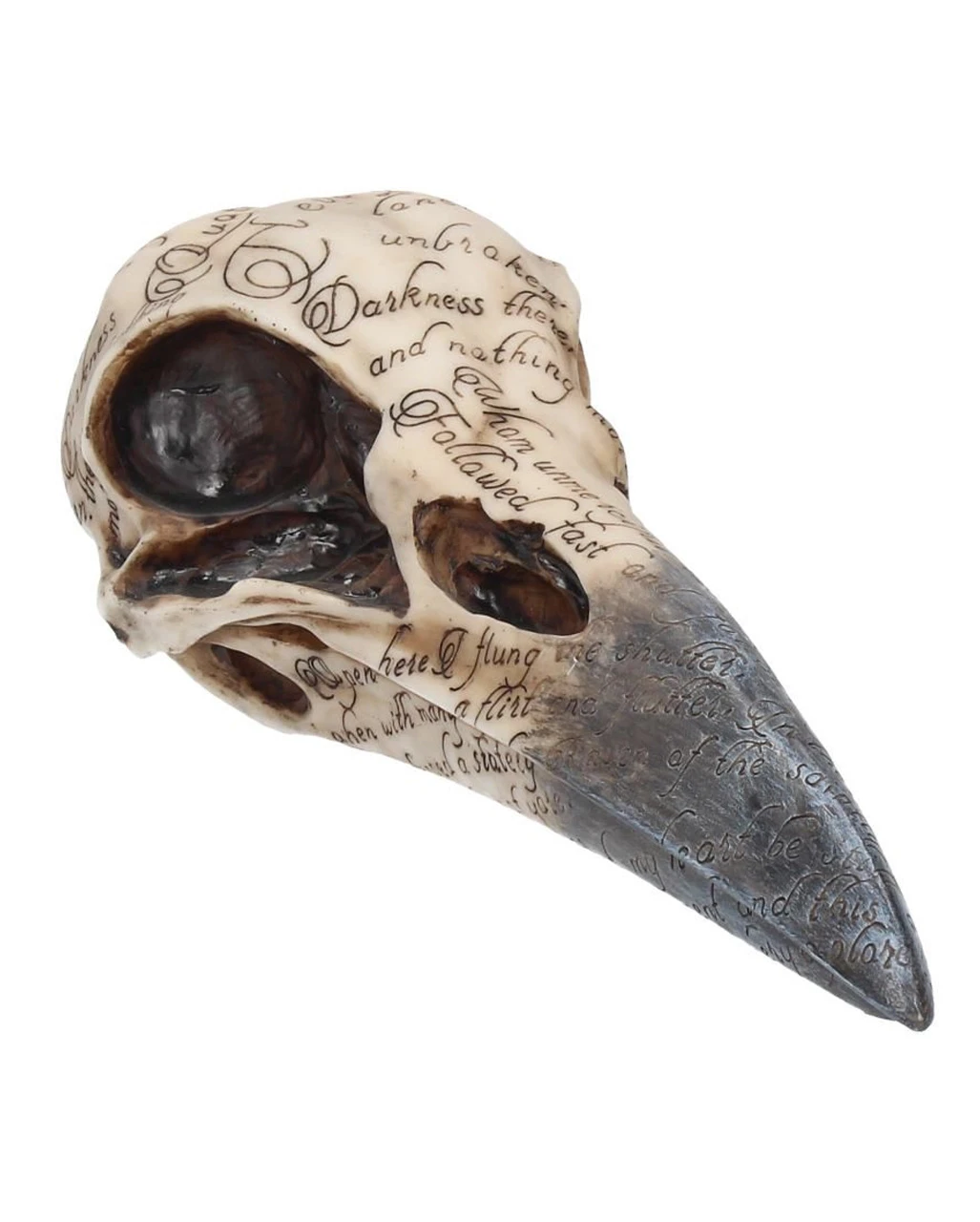 Edgar Allan Poe gilt als Meister der Kriminalliteratur und weiß ganz genau, wie er die Menschen zum Gruseln bringt. In Anlehnung an sein Gedicht „Der Rabe“ erhältst du von uns Edgar´s Raben Totenschädel als morbide Halloween Tischdeko. Der Raben Schädel ist mit viel Liebe zum Detail gearbeitet und mit Zitaten aus seinem Gedicht beschrieben. Ein echter Blickfang für Fans des Morbiden!