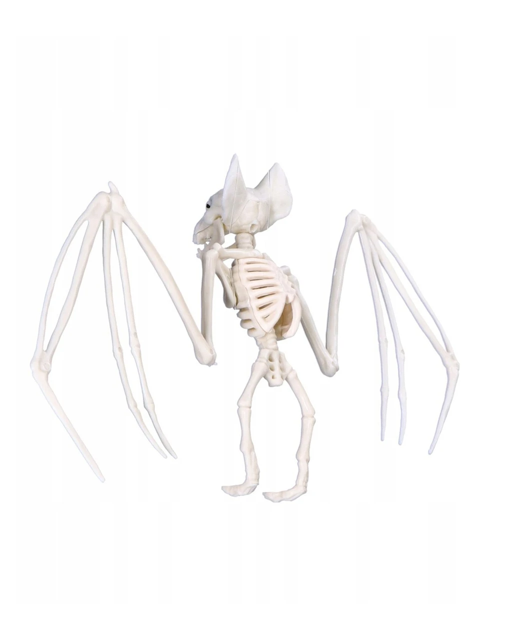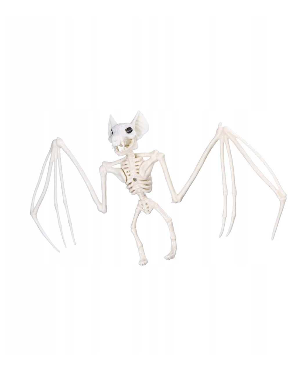 Mit der Fledermaus Skelett Deko kannst du zu Halloween einen tierischen Friedhof gestalten oder das knöcherige Vampirwesen bedrohlich aufhängen. Das detailliert gearbeitete, künstliche Fledermaus Skelett macht auf jeden Fall Eindruck und beflügelt deine Gruseldeko. Nicht nur für Fledermaus Fans!