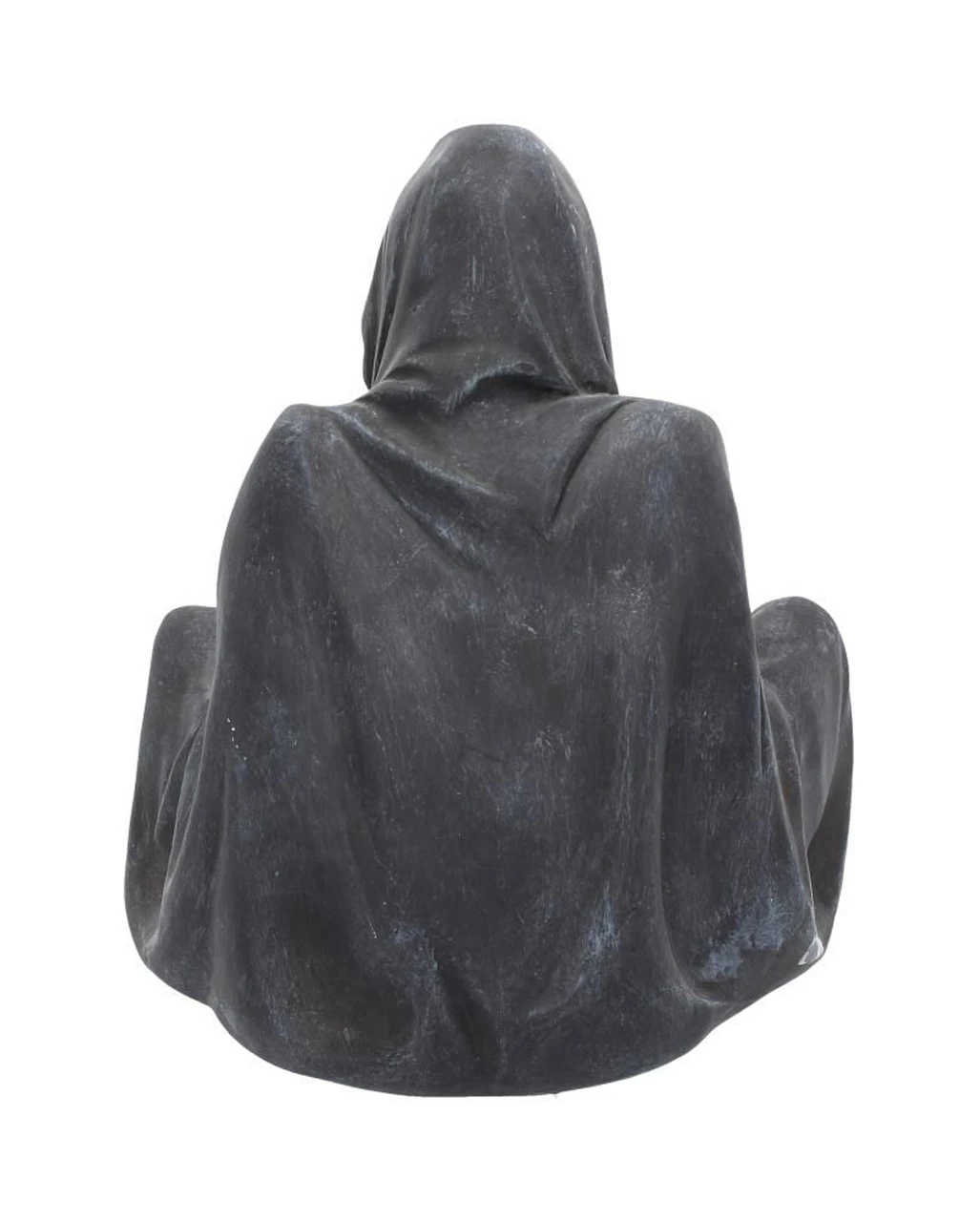 Der Grim Reaper Teelichthalter zeigt einen auf dem Boden sitzenden Gevatter Tod im schwarzen Kapuzenumhang, der auf seinem Schoß Platz für eine kleine Teelicht-Kerze hat. Dazu passen perfekt die 20 Premium Teelichter und an Halloween auch der Halloween Kürbis Teelichter 4 St..