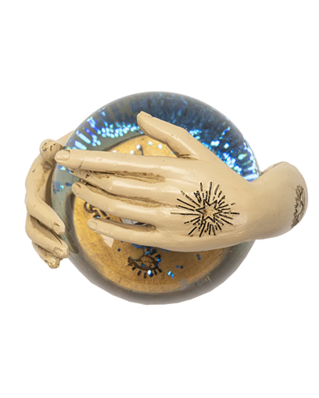 Mit der dekorativen Hellseher Schneekugel mit Auge besitzt du ein tolles Herzstück für deine Sammlung an mystischen Kuriositäten. Die extravagante Schneekugel zeigt zwei Hände, die mit okkulten Symbolen verziert sind und sich um die Glaskugel schmiegen. In der Mitte der Schneekugel befindet sich ein hellblaues Auge, das auf der Suche nach der Wahrheit ist und dich beim Vorhersagen von Zukunft und Schicksal unterstützt.