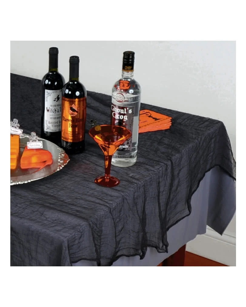 Das feinmaschige Gewebe der schwarzen Deko Tischdecke bietet unzählige Möglichkeiten der Dekoration – ganz gleich ob für Halloween, Karneval oder Gothic-Fans.