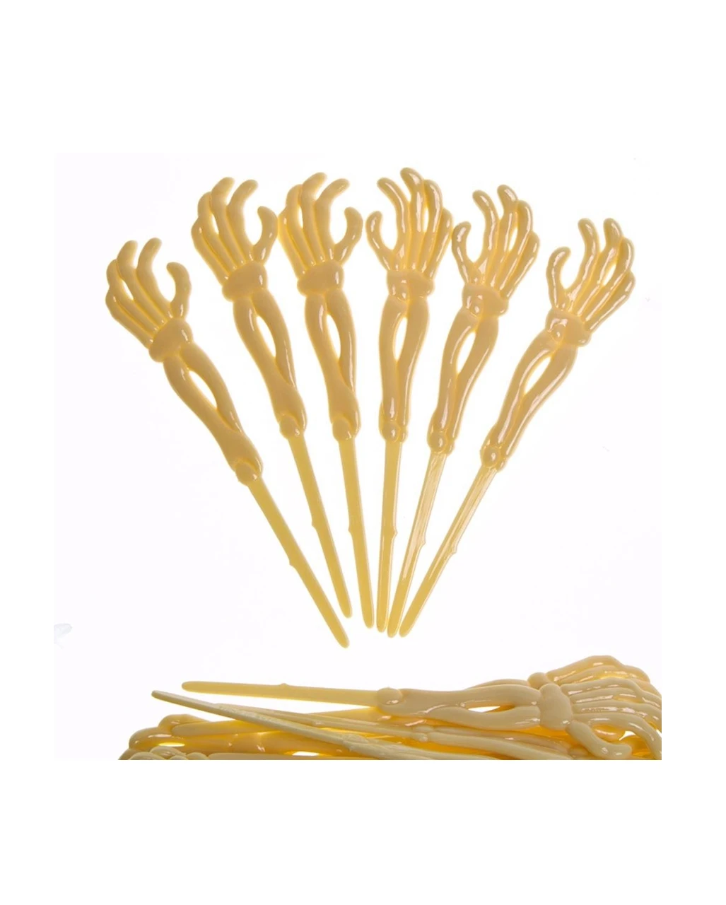 Halloween und Piratenfeste als Kindergeburtstag sind gemacht dafür dass Cupcakes, Eiskugeln, Kuchen und Cocktails gruselig verziert werden. Mit dem Skelett Hand Partypicker wird jedes Häppchen und jeder Cocktail schnell zur Stimmungskanone. Der Halloween Partygast freut sich bestimmt über die kleine Knochenhandals Verzierung. Mit dem Skelett Hand Partypicker lässt sich schnell ein Halloween Buffet stimmungsvoll dekorieren. Die Skelett Hand Partypicker werden ganz einfach zu Verzierung in die Speisen oder die Cocktailfrüchte gesteckt.