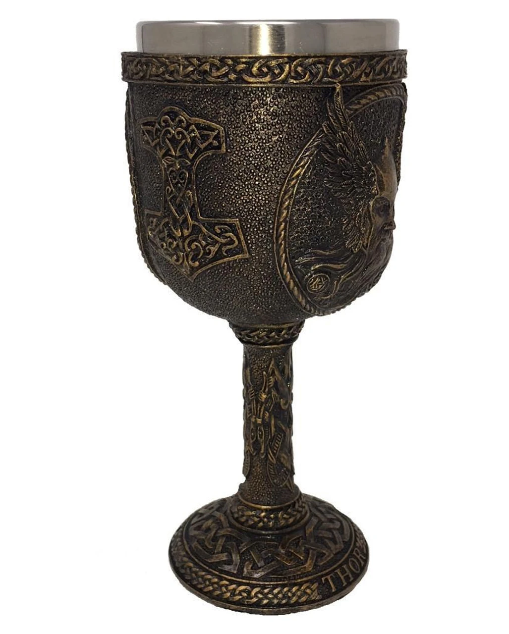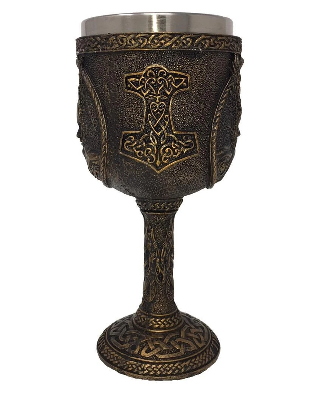Dekoriere mit dem hochwertigen Thor Wikinger Kelch deine festliche Tafel im Stile der großen Halle der Asen und Wanen! Der Fantasy Weinkelch in nordischer Optik eignet sich wunderbar als Deko für Halloween, Gothic Events und Fantasy Mottopartys sowie als Geschenkartikel für Mittelalter Fans!