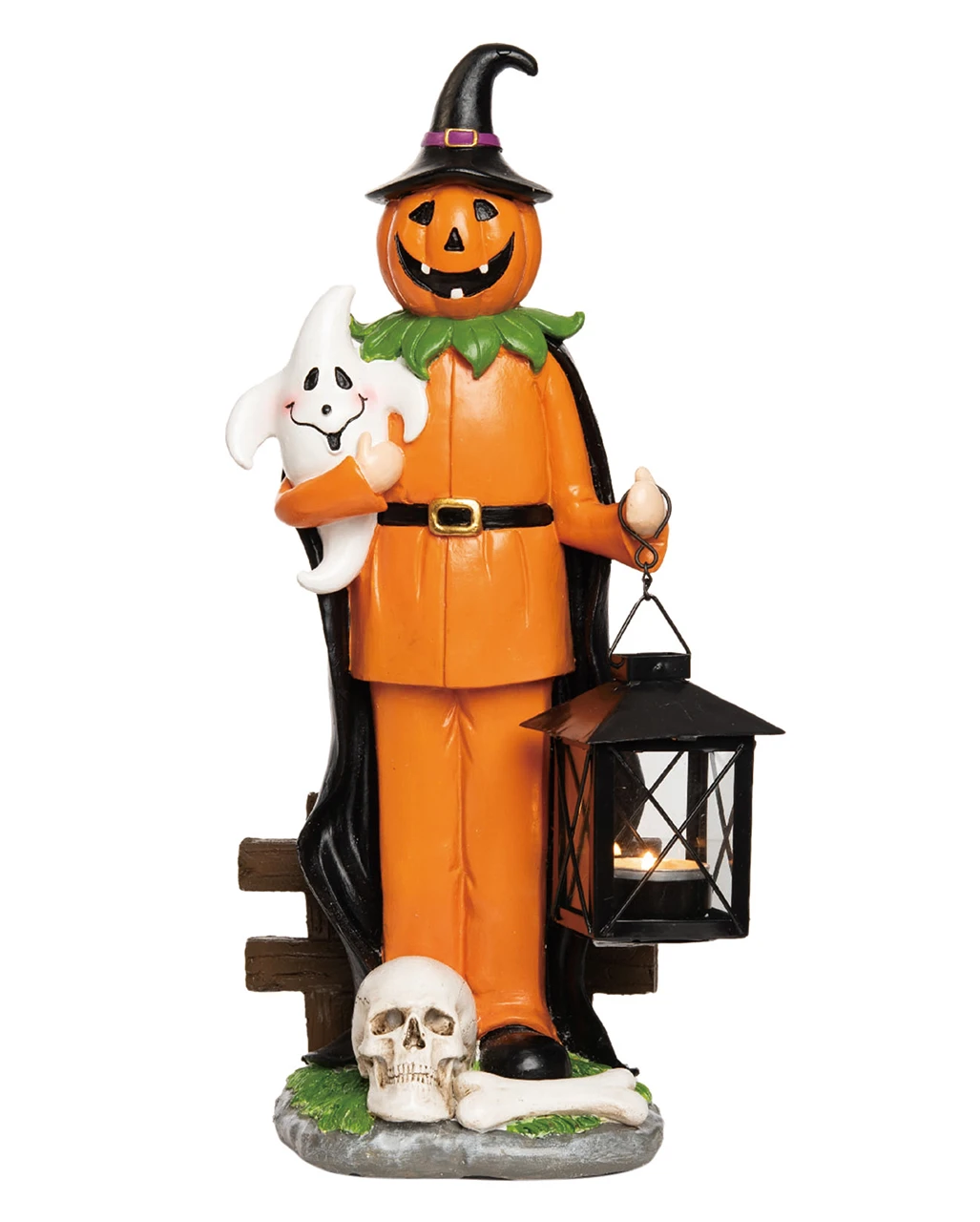 Lieferumfang: 1 x Wandernder Kürbis mit Geist & Laterne Teelichthalter 37cm