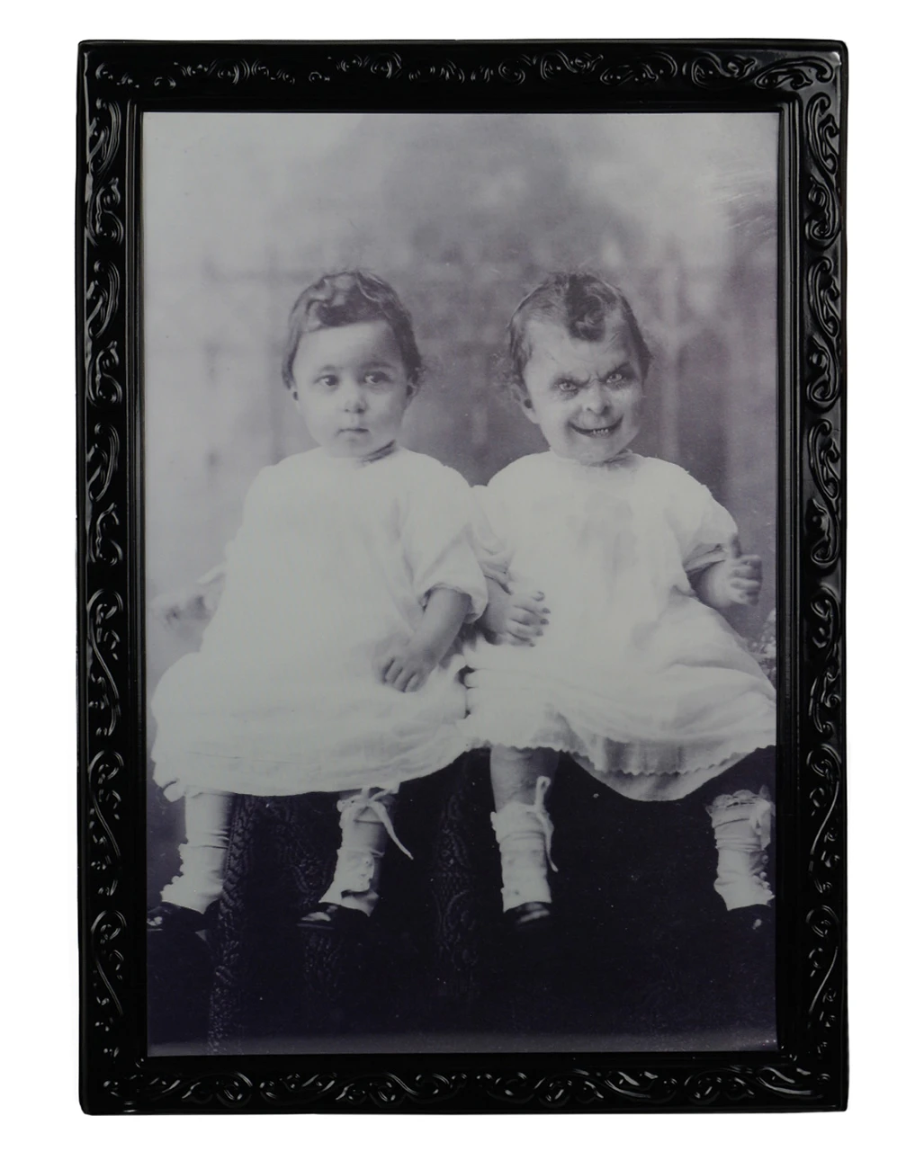 Verwandle dein Zuhause in eine Geisterbahn mit unserem Zombie Zwillinge Effektbild! Das unheimliche Wackelbild wird an Halloween und auf Gruselpartys unter Garantie für Angst und Schrecken unter deinen Partygästen sorgen!